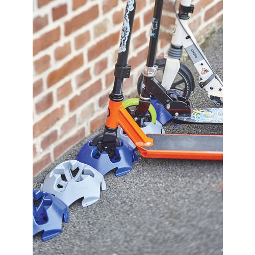 Scooter stand can be fixed to the ground via the opening on the central axis.