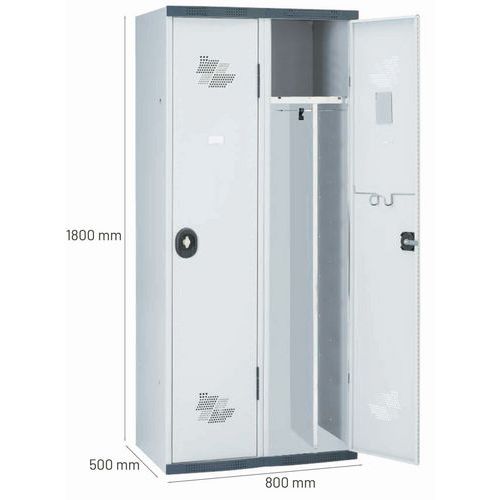 Steel plate locker is the number one choice: very rigid, holds its shape. 0.6-mm contoured sheet metal (equivalent to 0.8-mm standard bending). Columns welded together for added strength. Double clothes rail for storing clean and dirty clothes separately. Excellent mechanical strength with a stapled shut profile. Door cannot be unhinged when opened or closed, tamper-proof. Hinged, 18 ° opening. Cloakroom locker with embossed label holder.