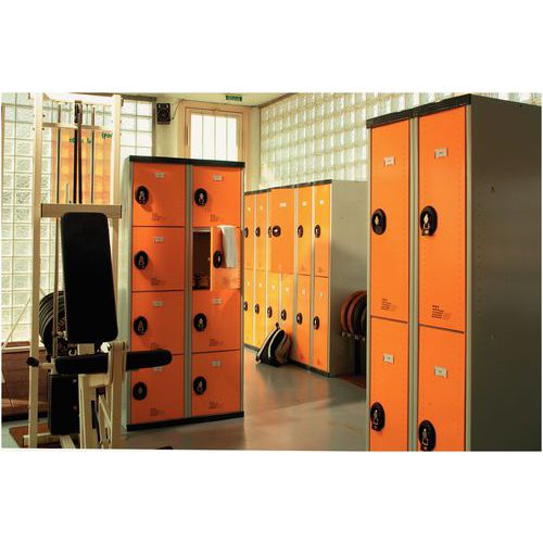 Steel plate locker is the number one choice: very rigid, holds its shape. 0.6-mm contoured sheet metal (equivalent to 0.8-mm standard bending). Excellent mechanical strength with a stapled shut profile. Door cannot be unhinged when opened or closed, tamper-proof. Hinged, 12 ° opening. Multi-compartment locker with embossed label holder. Ideal for furnishing your communal areas