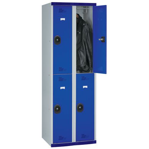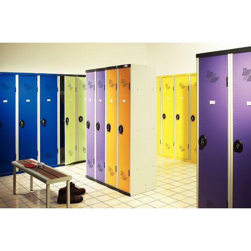 Includes: 1 rail and 1 hook per locker. Supplied with 1 set of 2 keys per lock for key-lock models and 1 decoding key for code-lock models (1 decoding key for 20 locks, sent separately via tracked courier except for deliveries to the Netherlands, Belgium and Luxembourg where the key is supplied with the locker).