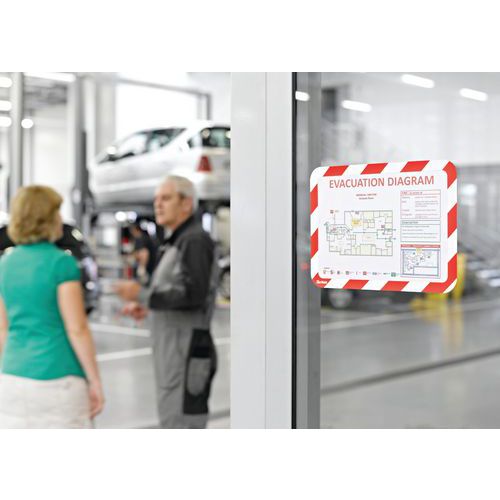 - Adhesive frame pocket that can be repositioned as required without leaving marks.