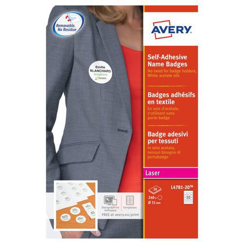 | Product Name | Self-adhesive badge for textiles Ø 51 mm, Colour: White, Type of fixings: Adhesive |