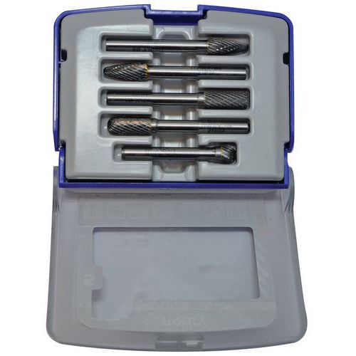 | Product Name | Set of carbide straight filing bits, Ø 8 mm, Number of parts: 5, Material: Steel, Type of support: Plastic |