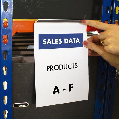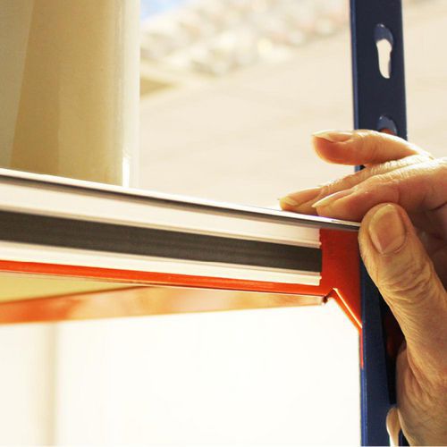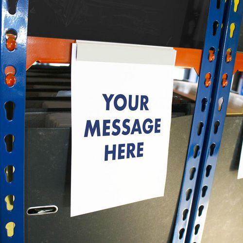 Self-adhesive backing for attachment to any smooth, flat, sealed surface, such as cabinets, steel shelving, racking, refrigerators, whiteboards, doors etc.