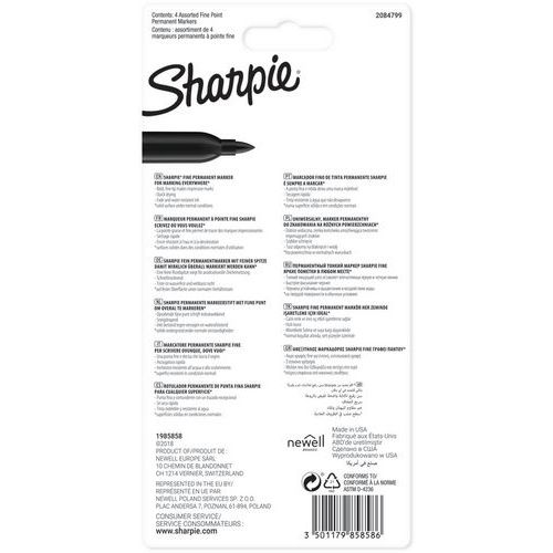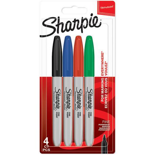 Sharpie fine-tip permanent marker, Ink colour: Assorted, Type of tip: Fine, Number of parts: 4, Tip Ø: 1 mm