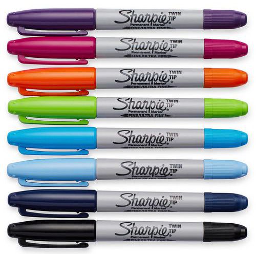 Sharpie permanent markers with fine and extra-fine twin tip.