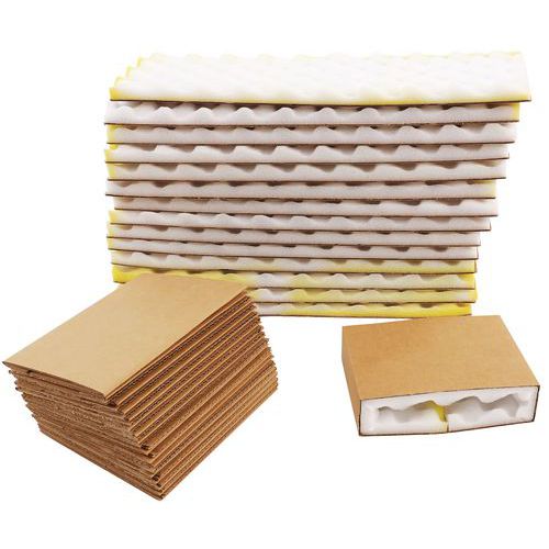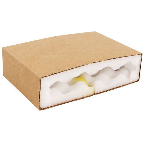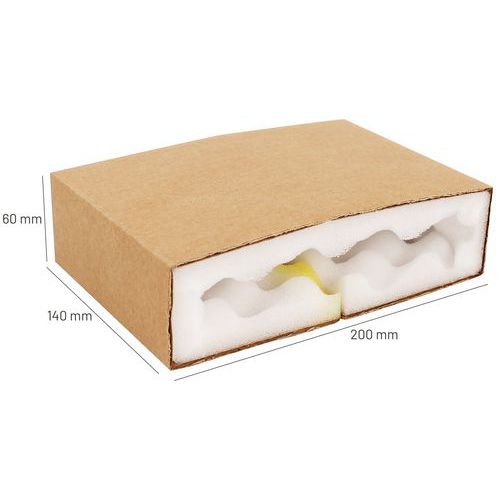 Double inside and outside protection. Sleeve padded with two non-abrasive foam plates. High impact Kraft corrugated board sleeve. Send all your fragile products by post or by courier.