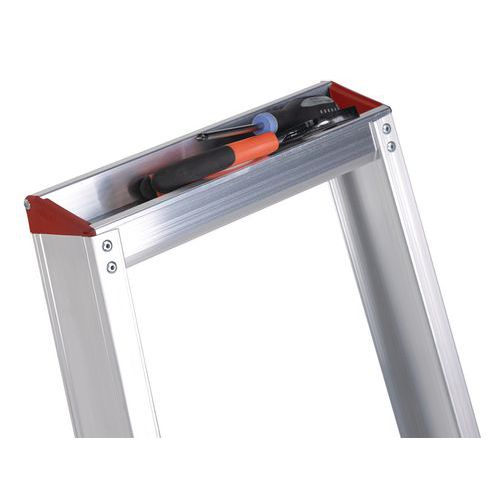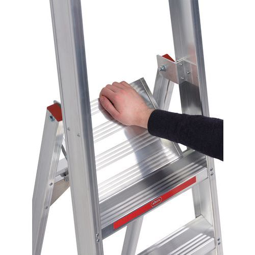 - Extremely lightweight professional single-sided aluminium stepladder with U-shaped profiled treads.