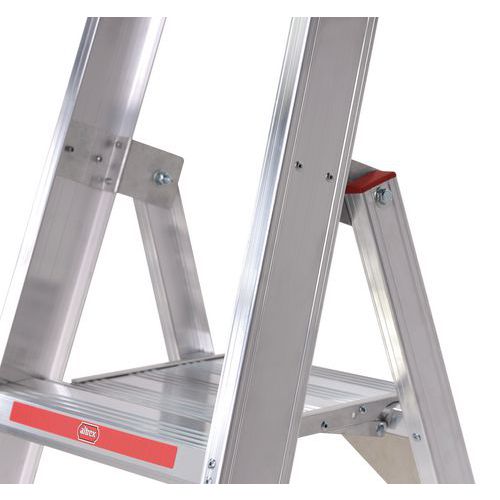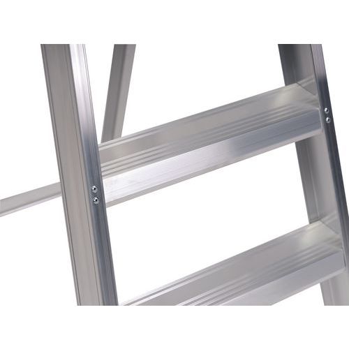 - Extremely lightweight professional single-sided aluminium stepladder with U-shaped profiled treads.