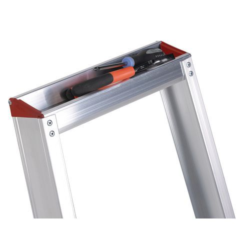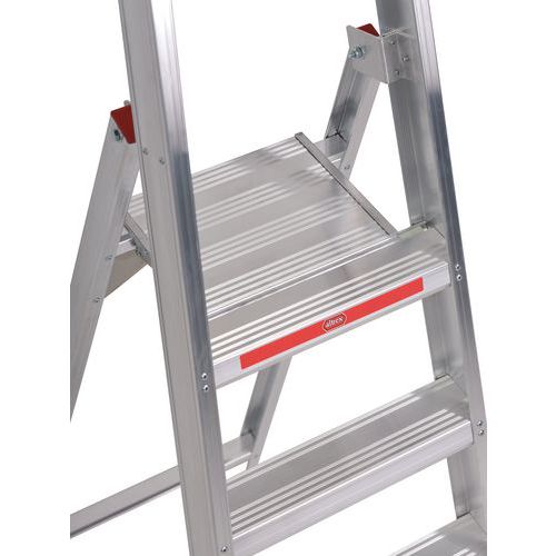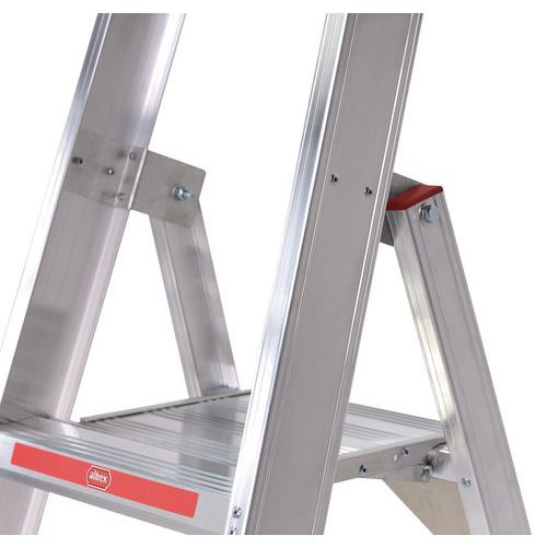 - Extremely lightweight professional single-sided aluminium stepladder with U-shaped profiled treads.