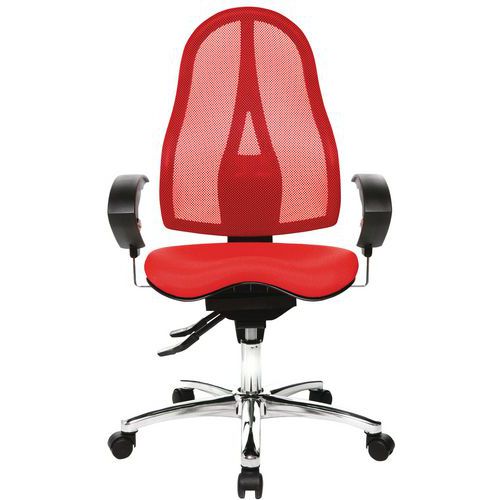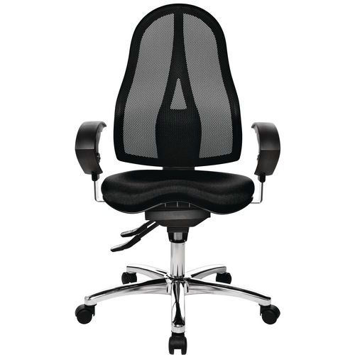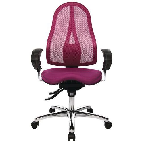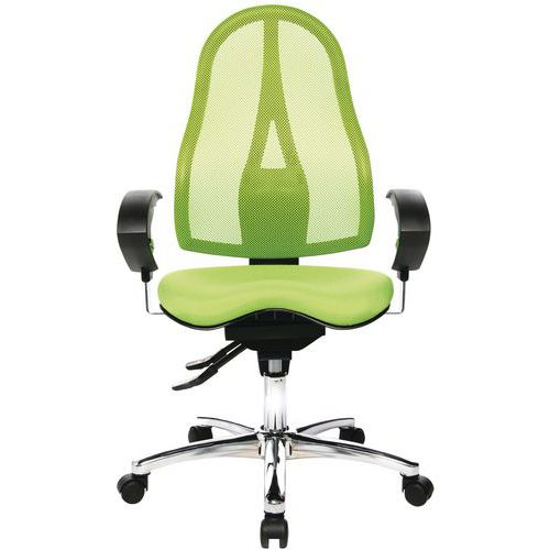 Ergonomic office chair with permanent contact and weight adjustment. Fitness-Ortho seat with three-dimensional adjustment thanks to Sitness® technology, for a stronger back, better posture and more comfort in everyday life. Pneumatic cylinder adjusts the height and depth of the seat base. Backrest is also height-adjustable for added comfort. The mechanism can be locked in 3 different positions. Improved support with armrests that can be adjusted from 26 to 32 cm high.