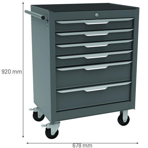 | Product Name | Six-drawer trolley containing 80 tools, Max. load: 300 kg, Max. load per drawer: 30 kg, O/A height: 920 mm |