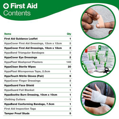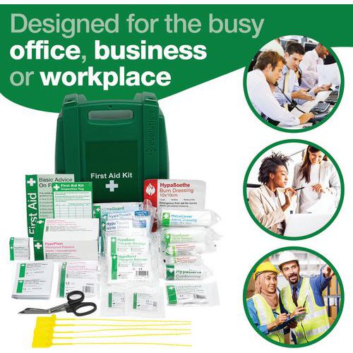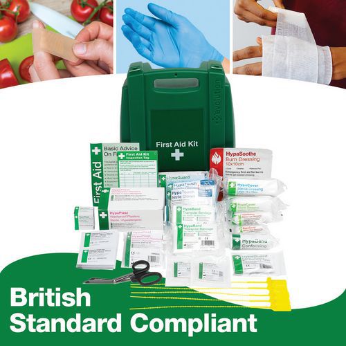 Small Workplace British Standard Safety First Aid Kit, Colour: Green, Kit size: Small