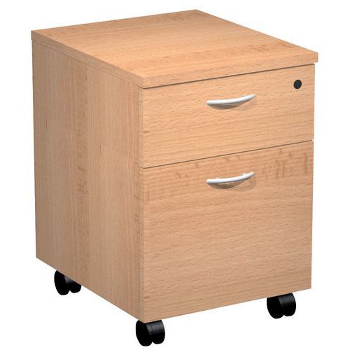 Filing cabinet featuring particle board drawers and melamine surfaces. Fitted with anti-topple wheels. Cylinder lock (1 drawer). Easy-to-install, efficient and strong