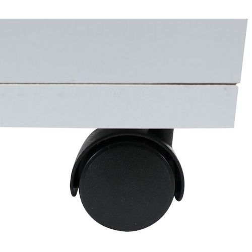 Filing cabinet featuring particle board drawers and melamine surfaces. Fitted with anti-topple wheels. Cylinder lock (1 drawer). Easy-to-install, efficient and strong