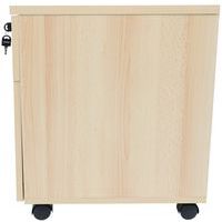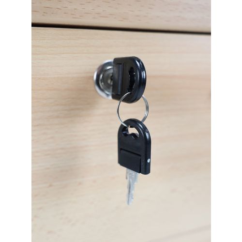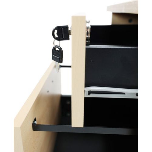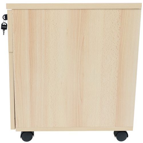 Filing cabinet featuring particle board drawers and melamine surfaces. Fitted with anti-topple wheels. Cylinder lock (1 drawer). Easy-to-install, efficient and strong