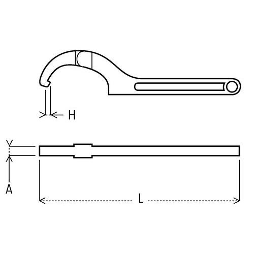 - Hook spanner for side slotted nuts.