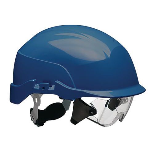 - Very lightweight and comfortable safety helmet with integrated goggles.