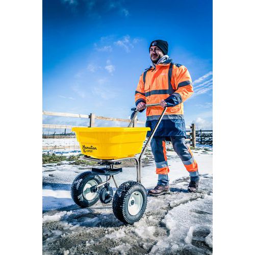 - Spreader for distributing salt, sand or fertiliser over medium-sized areas.