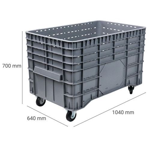 | Product Name | Stackable pallet container, Capacity: 300 L, Max. load: 120 kg, O/A height: 700 mm, O/A width: 640 mm |