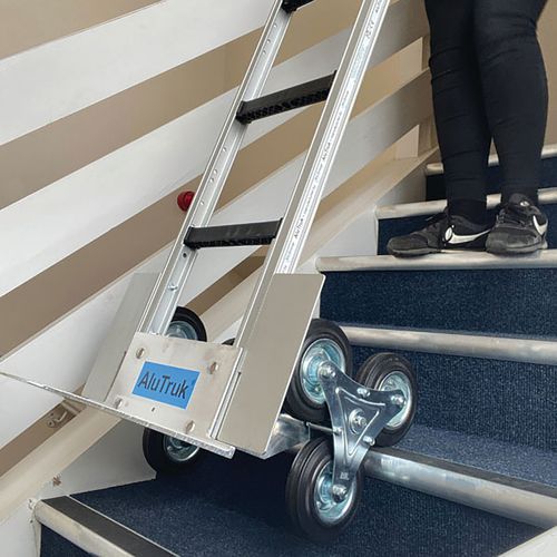 | Product Name | Stair-Climbing Aluminium Sack Truck, Material: Aluminium, Load capacity: 300 kg, Wheel tyre: Rubber |