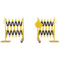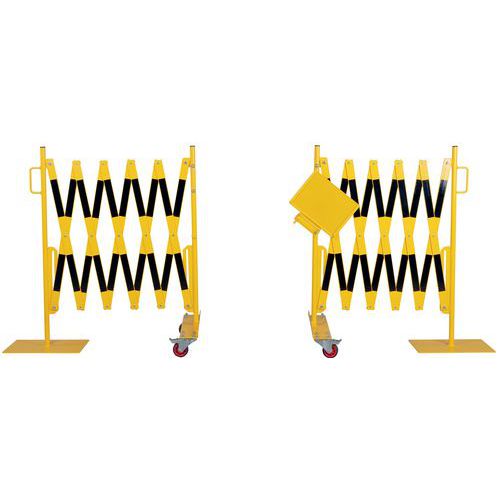 Set of extendable barriers to temporarily block and secure access to large surfaces. The central fastening element makes it possible to connect the 2 barriers together but also to display an information note in A4 format. Strong and stable: Barriers on castors with brakes for easy and safe operation. Powder-coated. TÜV certificate. Easy handling thanks to its wrists.