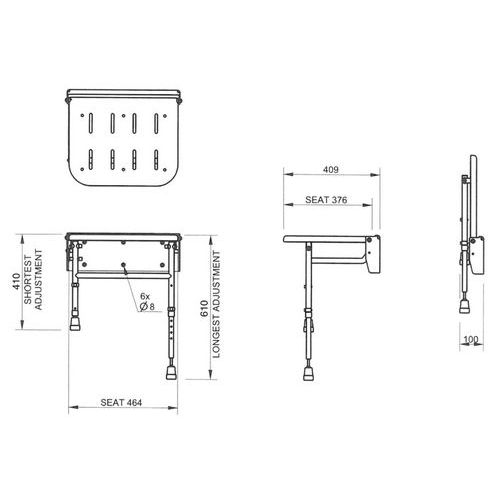| Product Name | Standard Shower Seat with Legs, Type: Shower Seat, Width: 470 mm, Depth: 465 mm |