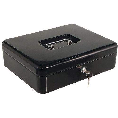 - Practical cash box with coin tray for holding coins. Practical metal grip in the cover.