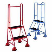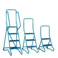 Fitted with tough formed sheet steel steps with an anti-slip surface for secure foot holds. Domed feet with rubber protection rings and retractable castors ensure complete immobility and safety when weight is applied during use. Choice of ribbed rubber or anti-slip step surface. 50mm dia. spring loaded retractable castors with non-marking tyres. Powder coated paint finish in red or blue. Number of treads include top platform.