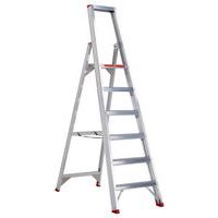 Features convenient hanging points to store tools on when working. Twin locking side bars give the ladder excellent stability. The treads are reinforced with a patented 7-point connection system and a central steel rod that runs right through each tread. Non-slip rubber feet for firm positioning. The large serrated treads are anti-slip. Smooth 'box section' stiles without sharp edges allow the ladder to be moved comfortably. Certified to BS 2037 Class 1. Complies with standard EN 131.