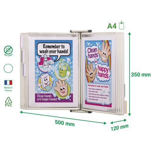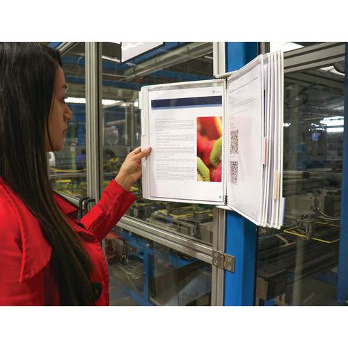 Designed to present and organise paper-based information in areas where the spread of bacteria poses a risk.