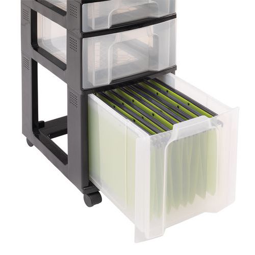 Unit mounted on 4 castors for maximum manoeuvrability. Transparent drawers allow you to see what is inside. Hermetically sealed for maximum dust protection. Tower with grained sides making it easy to label.