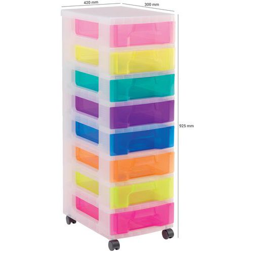 Unit mounted on 4 castors for maximum manoeuvrability. Transparent drawers allow you to see what is inside. Hermetically sealed for maximum dust protection. Tower with grained sides making it easy to label.