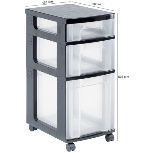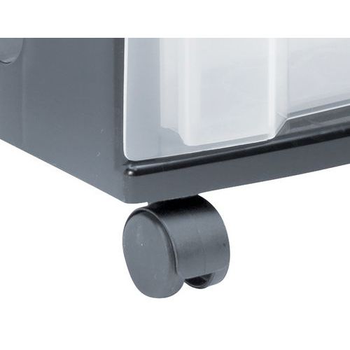 Unit mounted on 4 castors for maximum manoeuvrability. Transparent drawers allow you to see what is inside. Hermetically sealed for maximum dust protection. Tower with grained sides making it easy to label.