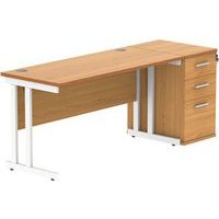 Straight Desk - 1400x600mm - High 3-Drawer Under Pedestal - 2 Uprights