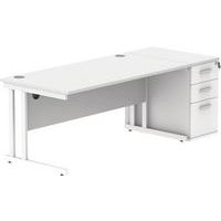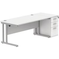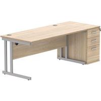 Straight Desk - 1600x800mm - High 3-Drawer Under Pedestal - 2 Uprights