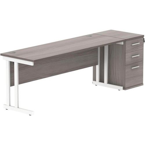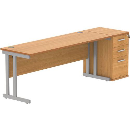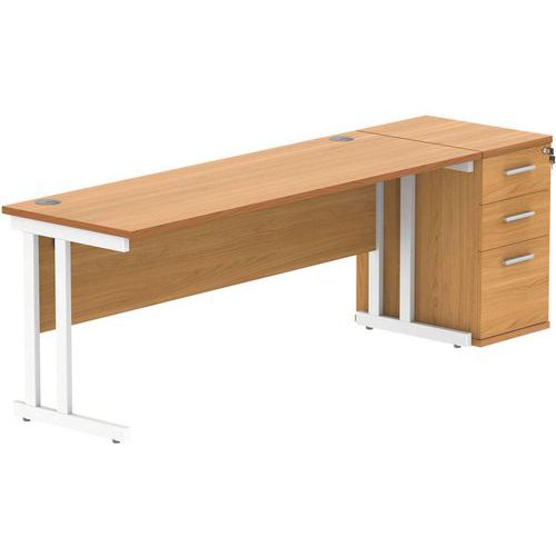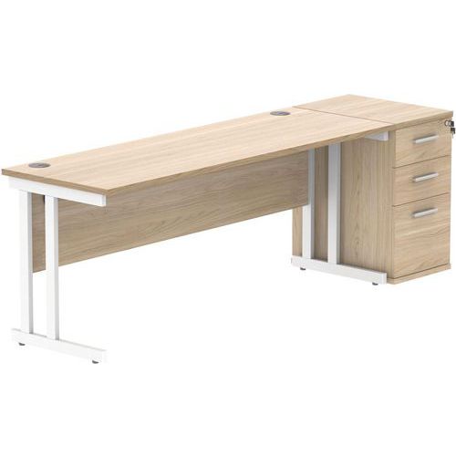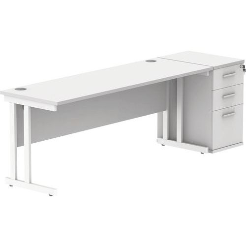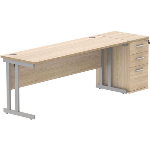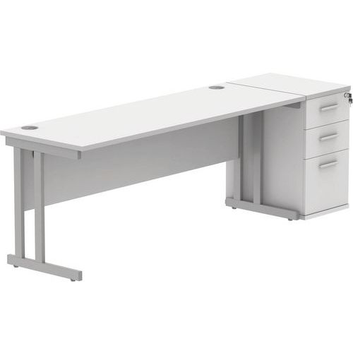Straight Desk - 1800x600mm - High 3-Drawer Under Pedestal - 2 Uprights