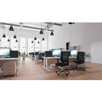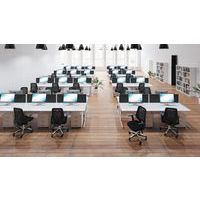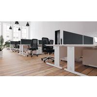 Heat resistant melamine finish. 25mm thick tops. 18mm modesty panels. 2mm protective ABS edging. 2 cable ports. Adjustable feet for levelling the desk on uneven floors. Secure steel to steel fixings. 2 modesty panels slots. The deep set modesty panel allows for compatibility of most screen clamp fittings.