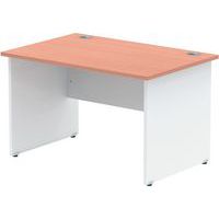 Heat resistant melamine finish. 25mm thick tops. 18mm modesty panels. 2mm protective ABS edging. 2 cable ports. Adjustable feet for levelling the desk on uneven floors. Secure steel to steel fixings. 2 modesty panels slots. The deep set modesty panel allows for compatibility of most screen clamp fittings.