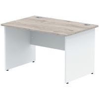 Heat resistant melamine finish. 25mm thick tops. 18mm modesty panels. 2mm protective ABS edging. 2 cable ports. Adjustable feet for levelling the desk on uneven floors. Secure steel to steel fixings. 2 modesty panels slots. The deep set modesty panel allows for compatibility of most screen clamp fittings.