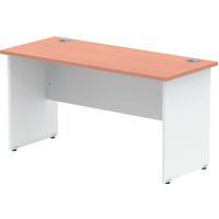 Heat resistant melamine finish. 25mm thick tops. 18mm modesty panels. 2mm protective ABS edging. 2 cable ports. Adjustable feet for levelling the desk on uneven floors. Secure steel to steel fixings. 2 modesty panels slots. The deep set modesty panel allows for compatibility of most screen clamp fittings.