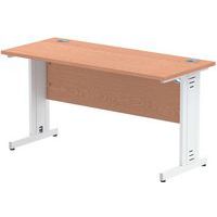 Heat resistant melamine finish. 25mm thick tops. 18mm modesty panels. 2mm protective ABS edging. 2 cable ports. Adjustable feet for levelling the desk on uneven floors. Secure steel to steel fixings. 2 modesty panels slots. The deep set modesty panel allows for compatibility of most screen clamp fittings.