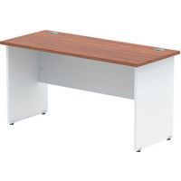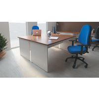 Heat resistant melamine finish. 25mm thick tops. 18mm modesty panels. 2mm protective ABS edging. 2 cable ports. Adjustable feet for levelling the desk on uneven floors. Secure steel to steel fixings. 2 modesty panels slots. The deep set modesty panel allows for compatibility of most screen clamp fittings.