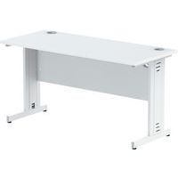 Heat resistant melamine finish. 25mm thick tops. 18mm modesty panels. 2mm protective ABS edging. 2 cable ports. Adjustable feet for levelling the desk on uneven floors. Secure steel to steel fixings. 2 modesty panels slots. The deep set modesty panel allows for compatibility of most screen clamp fittings.