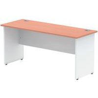 Heat resistant melamine finish. 25mm thick tops. 18mm modesty panels. 2mm protective ABS edging. 2 cable ports. Adjustable feet for levelling the desk on uneven floors. Secure steel to steel fixings. 2 modesty panels slots. The deep set modesty panel allows for compatibility of most screen clamp fittings.