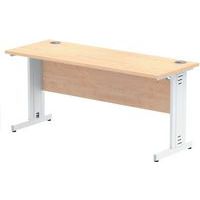 Heat resistant melamine finish. 25mm thick tops. 18mm modesty panels. 2mm protective ABS edging. 2 cable ports. Adjustable feet for levelling the desk on uneven floors. Secure steel to steel fixings. 2 modesty panels slots. The deep set modesty panel allows for compatibility of most screen clamp fittings.