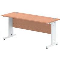 Heat resistant melamine finish. 25mm thick tops. 18mm modesty panels. 2mm protective ABS edging. 2 cable ports. Adjustable feet for levelling the desk on uneven floors. Secure steel to steel fixings. 2 modesty panels slots. The deep set modesty panel allows for compatibility of most screen clamp fittings.