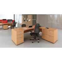 Heat resistant melamine finish. 25mm thick tops. 18mm modesty panels. 2mm protective ABS edging. 2 cable ports. Adjustable feet for levelling the desk on uneven floors. Secure steel to steel fixings. 2 modesty panels slots. The deep set modesty panel allows for compatibility of most screen clamp fittings.