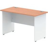 Heat resistant melamine finish. 25mm thick tops. 18mm modesty panels. 2mm protective ABS edging. 2 cable ports. Adjustable feet for levelling the desk on uneven floors. Secure steel to steel fixings. 2 modesty panels slots. The deep set modesty panel allows for compatibility of most screen clamp fittings.