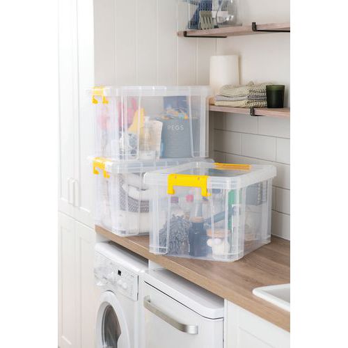 Strata 35L Stackmaster Clear Plastic Storage Box, Capacity: 35 L, Nestable: yes, O/A height: 31 cm